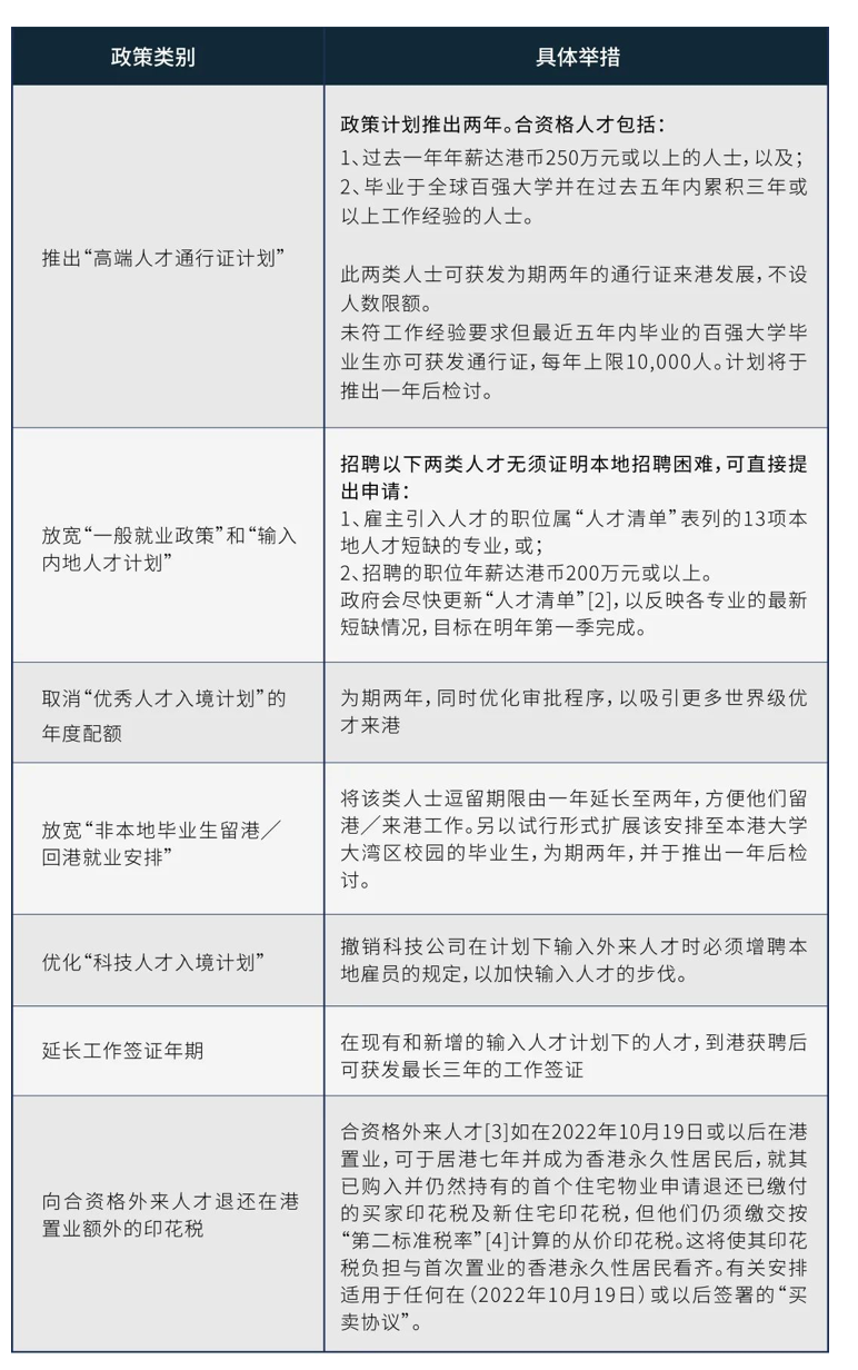 所以港府在这两年大力推广吸收内地人才的政策,比如取消了优才计划的配额、推出了高才通计划、放宽输入内地人才计划的门槛、延长工作签证年限、优化科技人才入境计划等等一系列的措施。