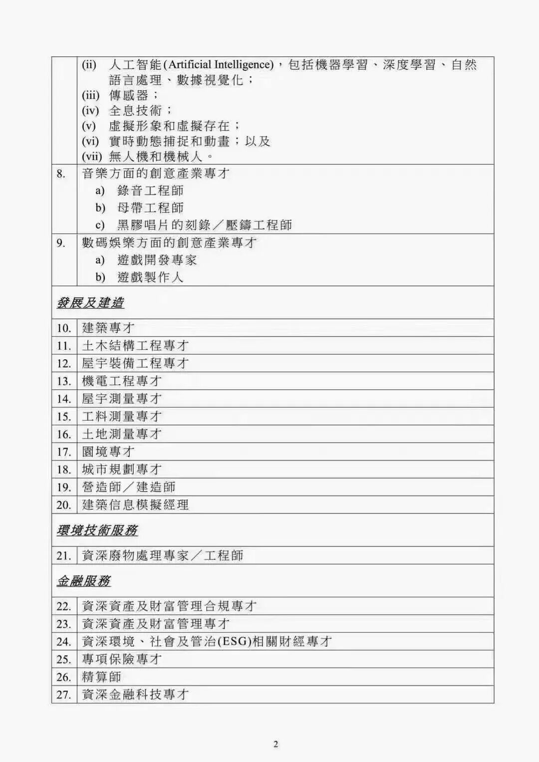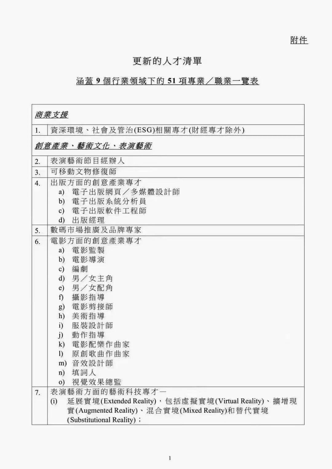 香港过去的人才清单主要是金融、海事、环保、科技创新行业,现在扩招的主要是医疗行业和土木工程行业。
