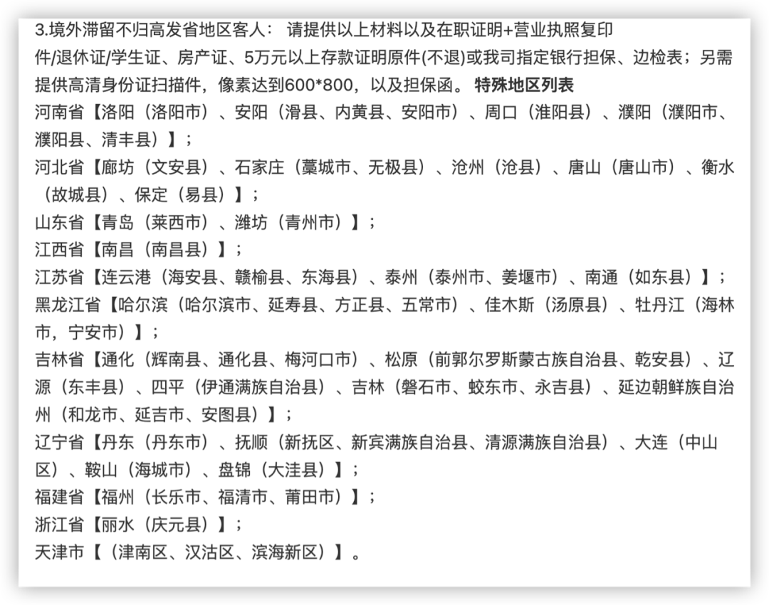 前几年网上流传着一张境外滞留不归高发省地区的名单,凡是这些地区的朋友想要正常申请出国旅游签,要提供的证明都更多,这其中东北地区的市县上榜居多。