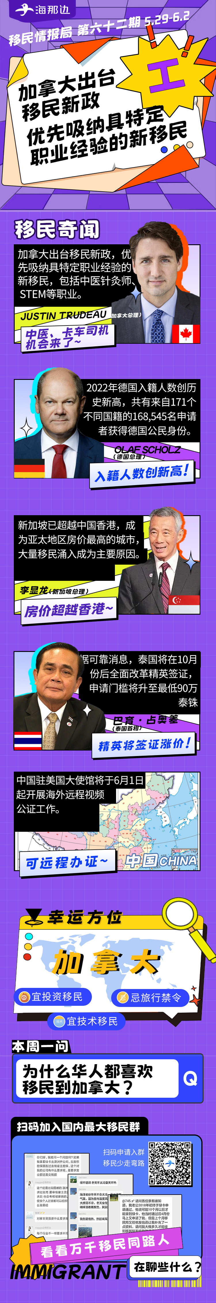 德国入籍人数创纪录;泰国精英签证全面涨价;新加坡成房价亚太最高