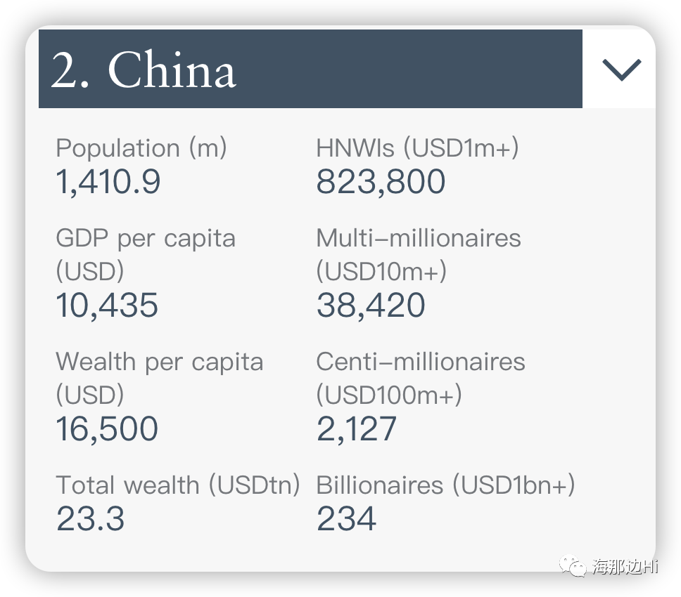 亨氏咨询这份报告里的富豪,也就是净资产100万美元的人士,目前在中国一共有823800人。这个数据是由南非咨询机构新世界财富(New World Wealth)发布的《2022全球私人财富报告》列出的。