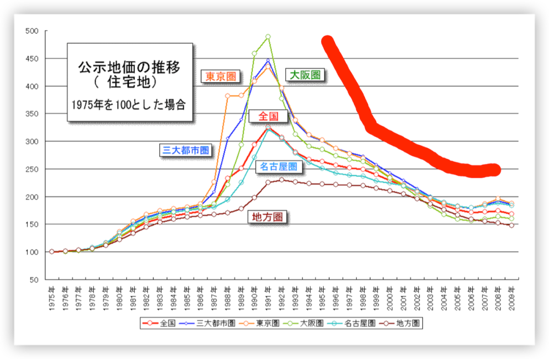 日本在房地产泡沫破灭后失去了30年,30年来日本的房价就是一个L型。