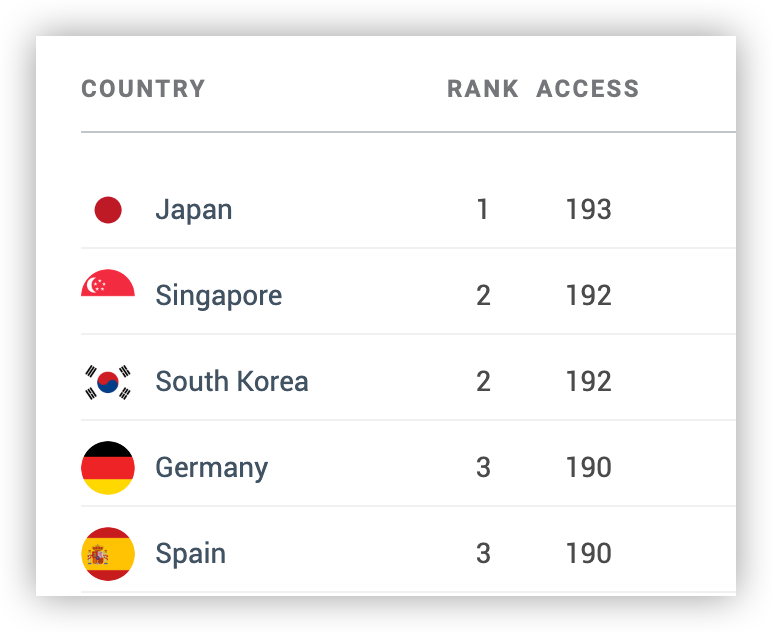 日本的护照含金量全球第一,免签数量达到了193个(占世界的85%),这些目的地合计占全球经济的98%(日本自己的GDP贡献率约为5%)。当你拥有了日本护照,几乎可以免签去这个世界的任何地方。