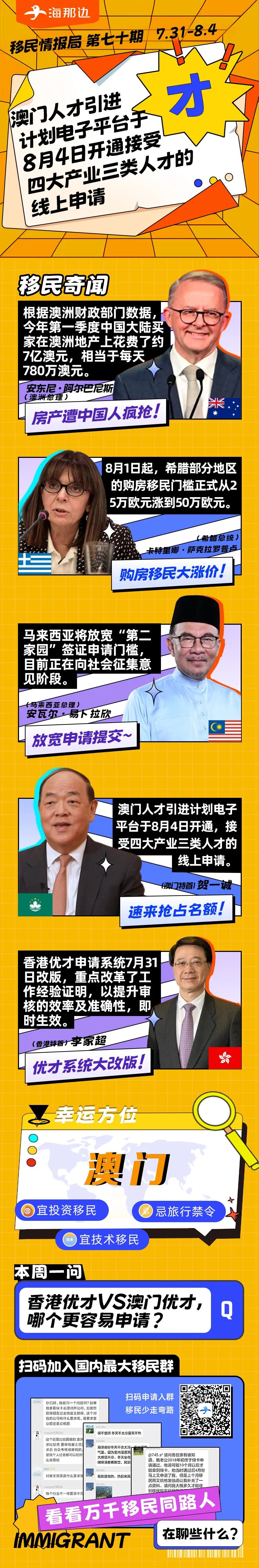 澳门人才引进网站上线;希腊购房移民正式涨价;马来西亚将放宽移民门槛