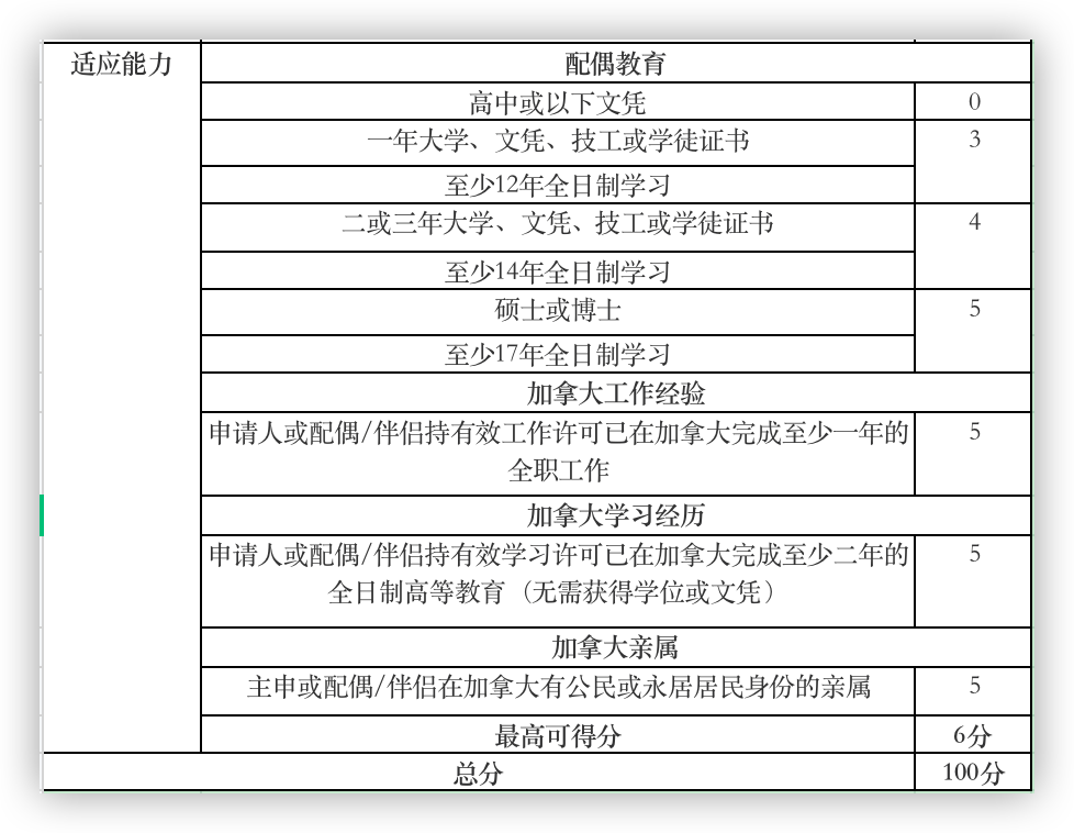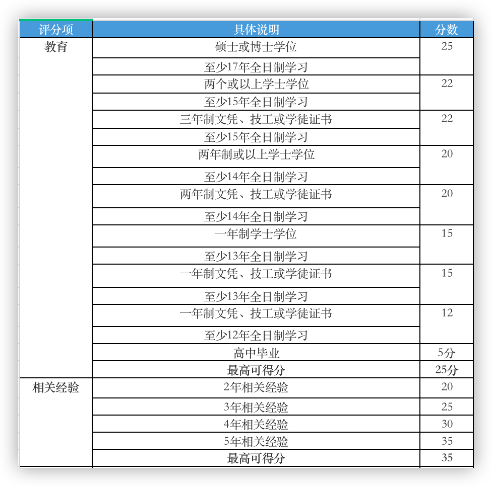 我们可以看到,这个评分表只要你在两个方面比较突出就能达标,并没有硬性的语言和学历的要求。