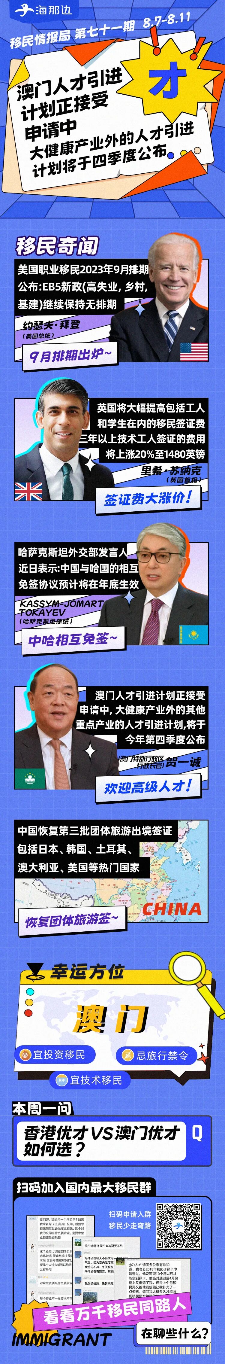 中国即将增加一个免签国家;英国签证费用大涨;美国移民9月排期出炉;