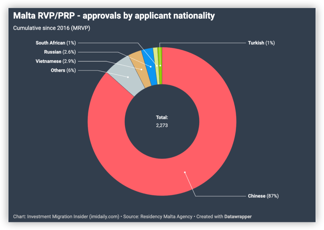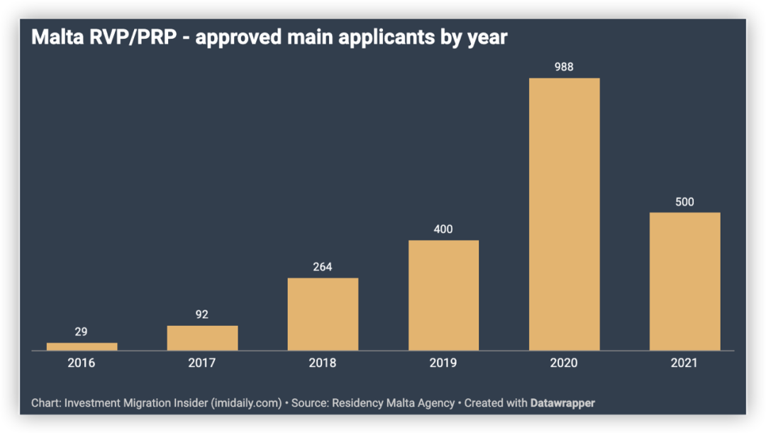 根据马耳他移民局的数据,从2016年到2021年年底,一共有2273名主申请人及5303名附属申请人通过投资移民获得了马耳他永久居留身份。