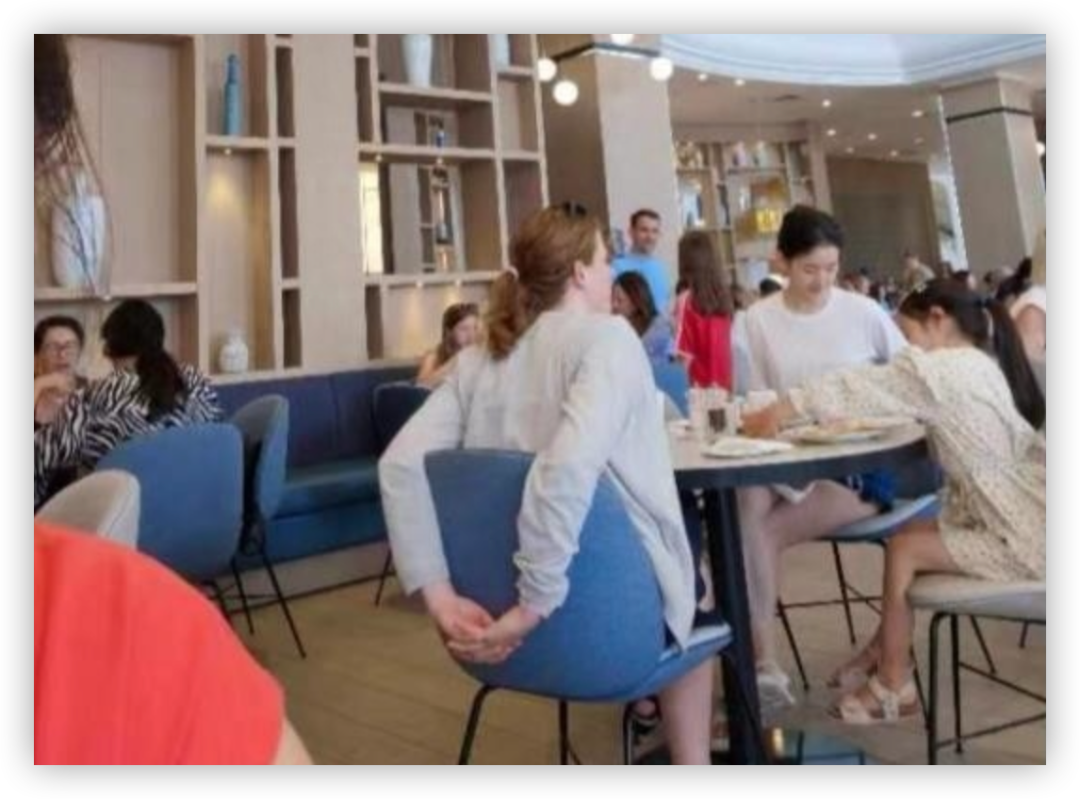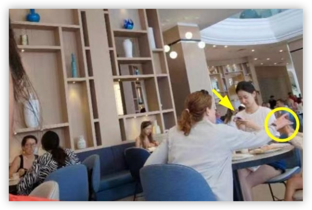 照片里有一位穿着白T配黑色短裤的女子,确实神似章泽天。她身旁穿着碎花裙子的小女孩,大概七八岁的样子,应该就是章泽天的大女儿。在章泽天对面,还有一位白人女子,关注着章泽天女儿的一举一动,当小朋友拿起桌上东西时,白人女子很快便上前制止,而一旁的章泽天却忙着玩手机,十分清闲,估计此人正是章泽天为女儿请的家庭保姆。