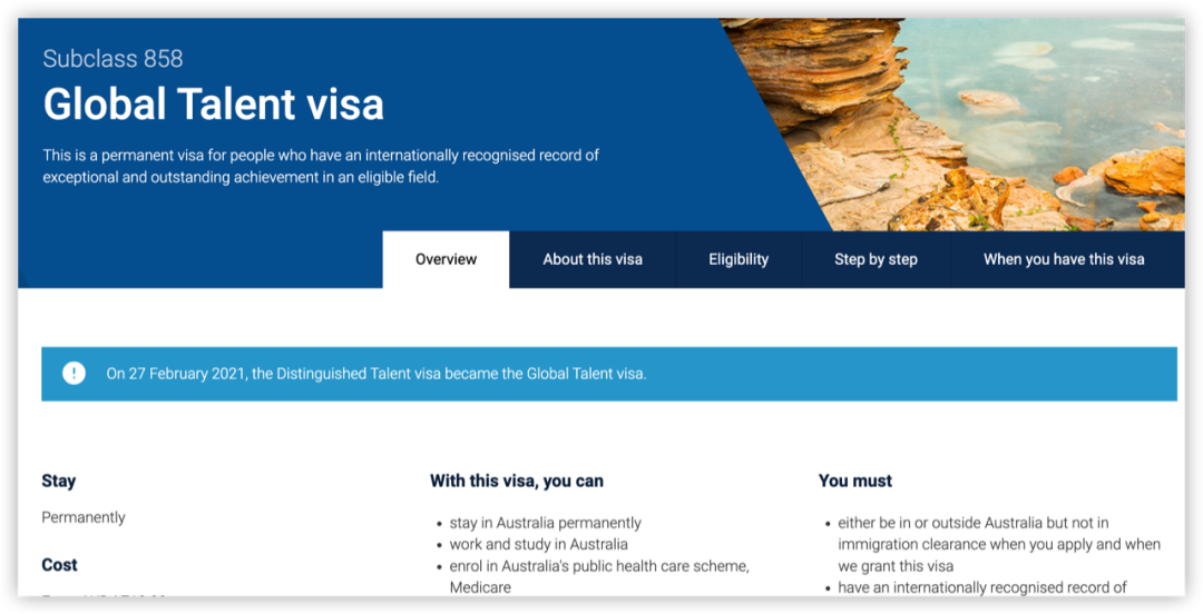 GTI隶属于澳洲移民系统里的858类别,这是一种为高技能专业人士提供的在澳洲生活和工作的永久签证。