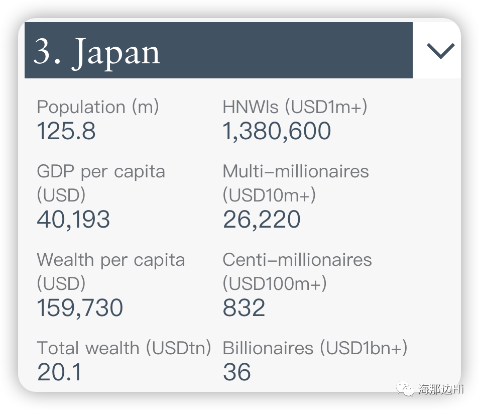 排名第三的是日本,私人财富总值达到了20.1万亿美元。