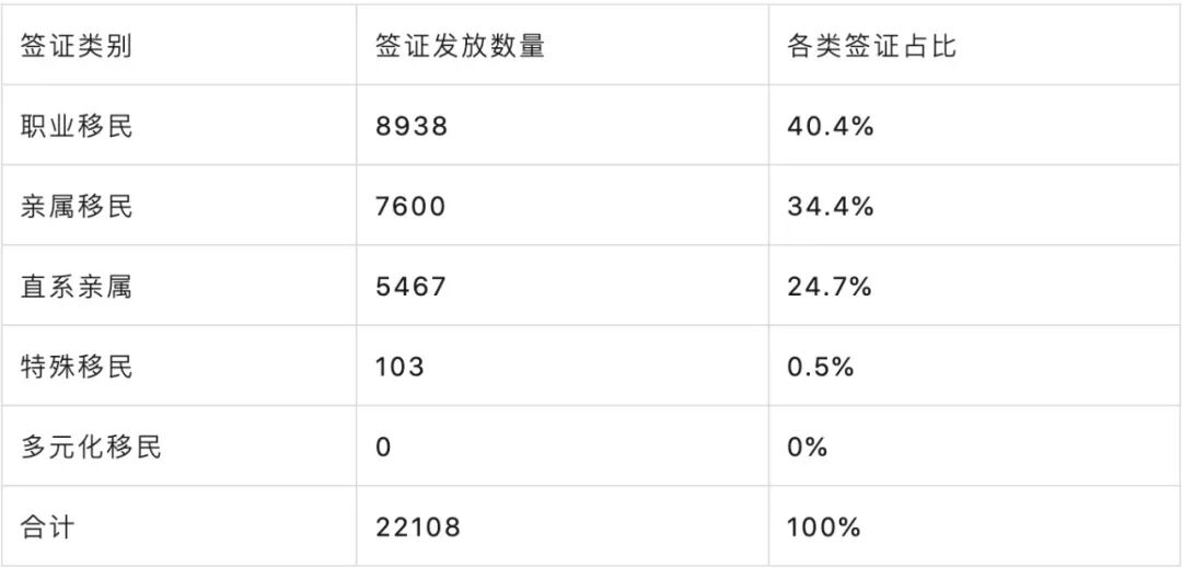 去年美国一共向22108名中国发放了移民类签证,其中职业类移民占比最多达到40.4%,而亲属移民排在第二位,占比34.4%。