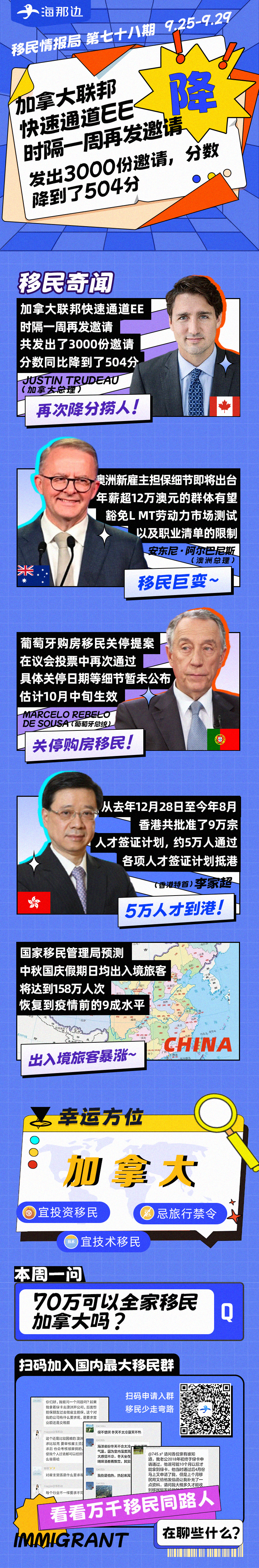 5万内地人才已到香港;葡萄牙购房移民确定关闭;加拿大联邦ee再发邀请