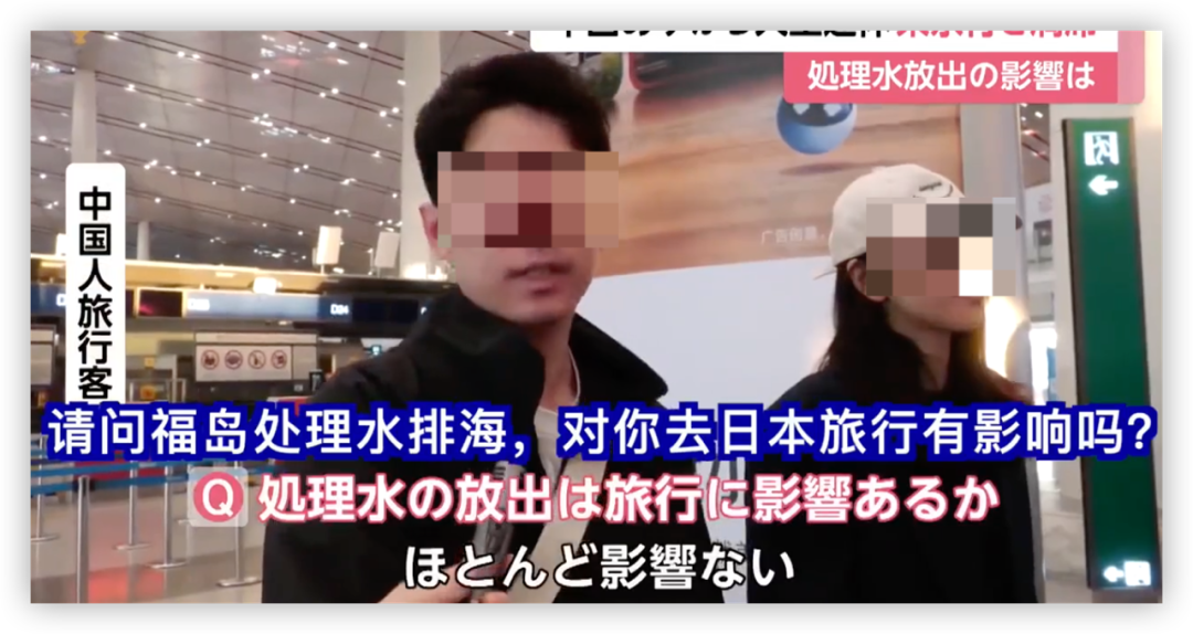 日本记者还随机采访了几位中国游客,问他们“福岛核废水事件对于去日本旅游有什么影响?”中国游客回答:“几乎没有影响”。