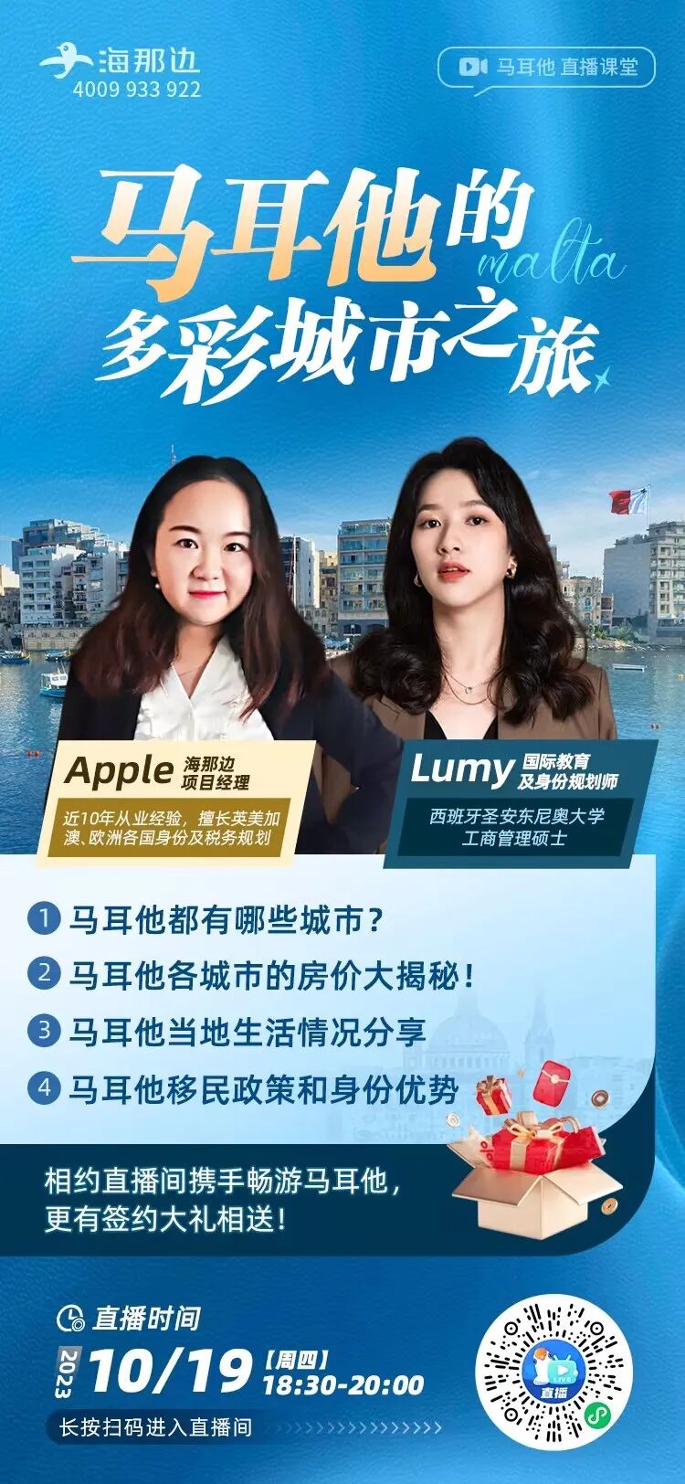 🕙今晚6点半相约直播间,携手畅游马耳他,更有签约大礼🎁相送!