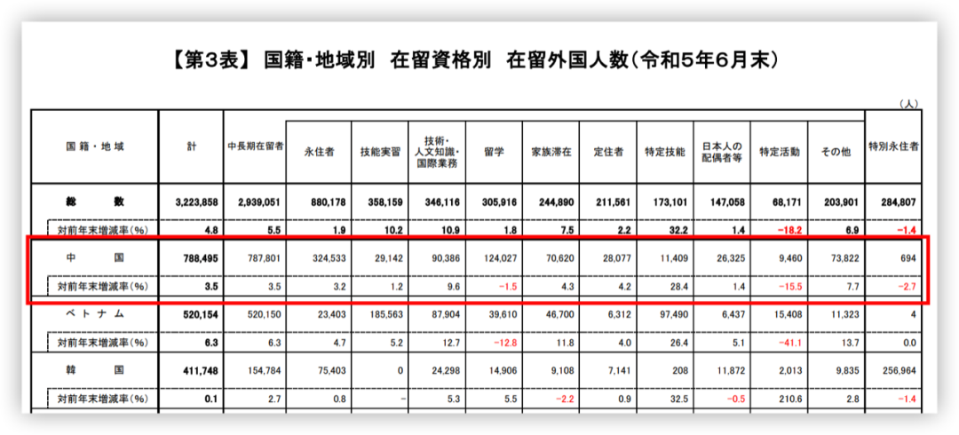 根据日本出入国管理厅再近日发布的数据,截至“令和5年6月末”(2023年6月30日),在日本长期居住的外国移民数量达到了创纪录的322万3858人,同比增长4.8%。