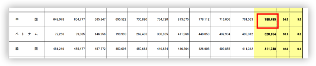 这个排序和中国移民的排序相差也不是很大。在统计表里,中国移民拿的最多的签证也是永住者签证,有32万4533人;然后是留学签证,12万4027人;后面依次是技术人文知识国际业务签证,90386人;家族滞在,70620人;技能实习,29142人;日本人配偶,26325人;特定技能,11409人。