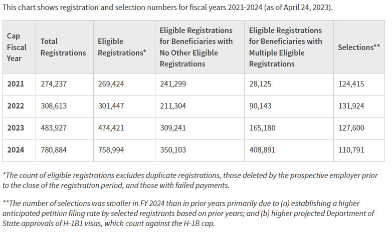 在美国移民局刚公布了2023年的H1B抽签数据中,我们也可以很清楚看到这个趋势。