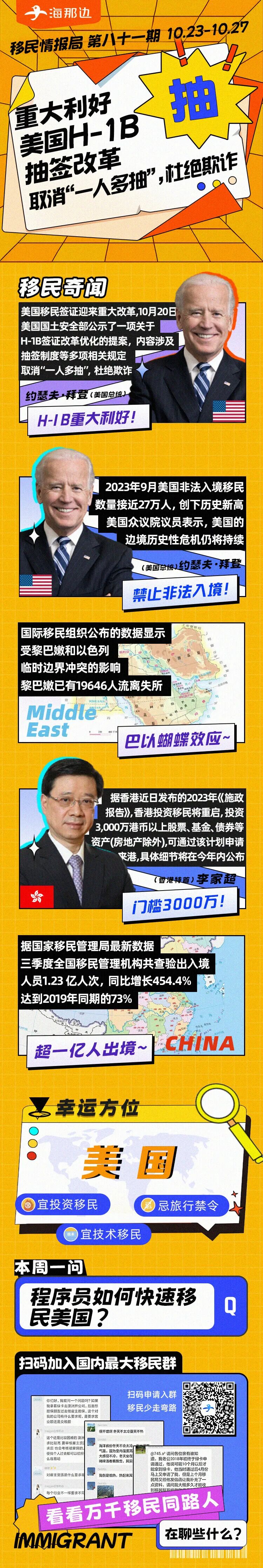 美国H-1B签证重大改革;香港投资移民重启;三季度出入境人数暴涨