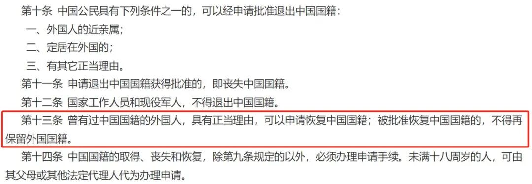 其实恢复中国国籍并不难,国籍法里就有明确的规定: