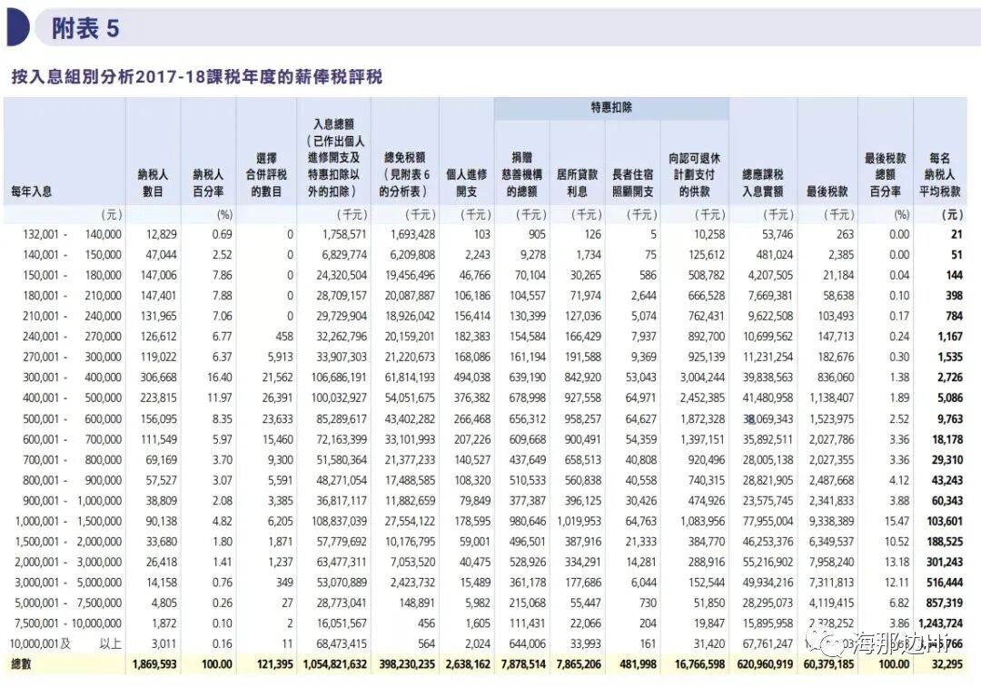 如下图所示,如果你在香港一年收入在40万到50万之间,那么平均需要交5000多的税款,如果超过了1000万,那么需要交的税款为33.4万港币左右。
