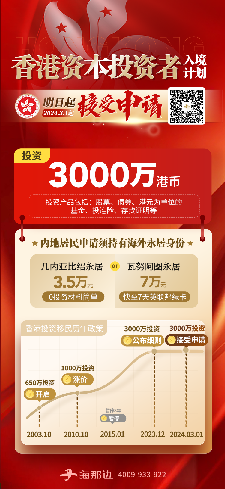 刚刚,香港终于官宣:香港投资移民计划将于明日(3月1日)正式开始接受申请。