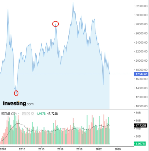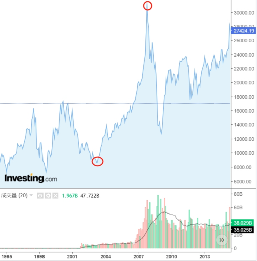 2003年到2007年,恒生指数从最低的8000多点稳步上涨到了30000多。