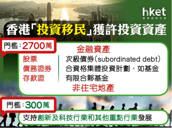 新的香港投资移民投资门槛为3000万港币,这3000万涵盖了两个类别: