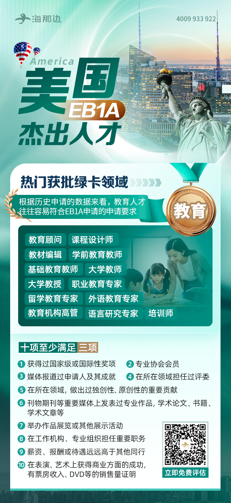 如果你才华横溢,在相关领域积累了一定的名气和成就,毫无疑问你符合美国EB1A的申请条件。