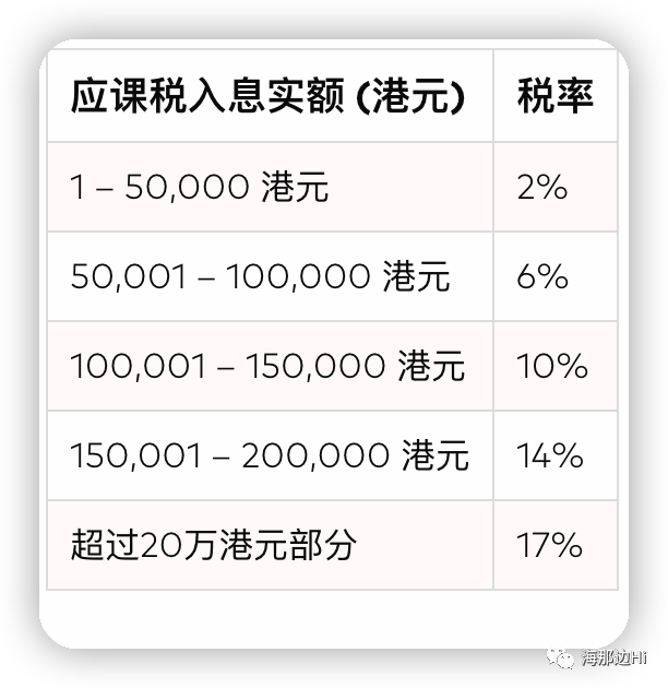 香港居民的收税额根据年收入水平进行累进制计算,税率范围为2%至17,而内地个人所得税税率范围为3%至45%。