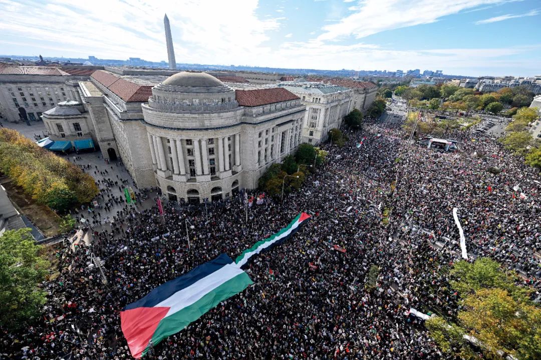11月4日到5日间,从美国东海岸的华盛顿特区到西海岸的加州,从英国、法国到德国,支持加沙平民、反对政府援助以色列的示威游行,席卷欧美国家。华盛顿的游行组织者介绍,预计有2万到10万人参加最近的一次大规模抗议;英国伦敦警方称,走上街头的民众超过3万人。