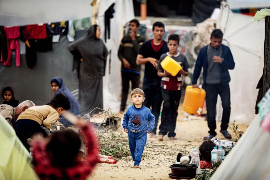 随着以军的地面攻势扩大至汗尤尼斯,大批巴勒斯坦人再次向南逃难,涌入临近埃及边境的拉法市。