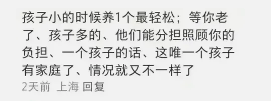 而赞成多子女的网友则说:养儿防老,虽然可以存钱,但老人生病的时候,多个人就多个人分担责任,轮流照顾,压力小。