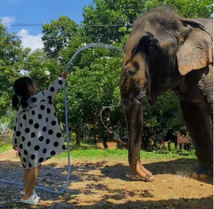 (女儿给大象浇水)