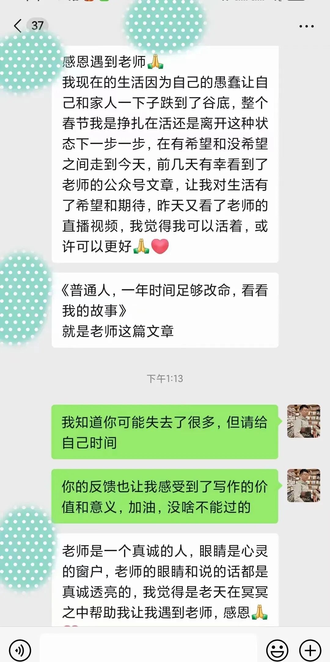 还有一位小伙伴,看到我推文后,从生命边缘走了回来,决定重新开始。