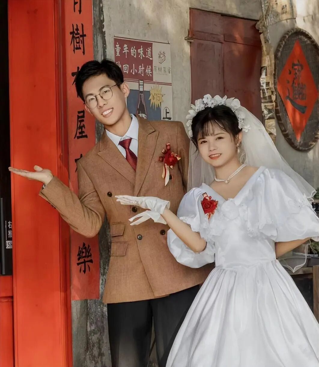 今年11月14日,我和莎姐在农村举办了婚礼。我特地穿上了一件复古风格的褐色小西装,莎姐穿着一袭纯白的婚纱,美得像是从童话里走出来的公主。