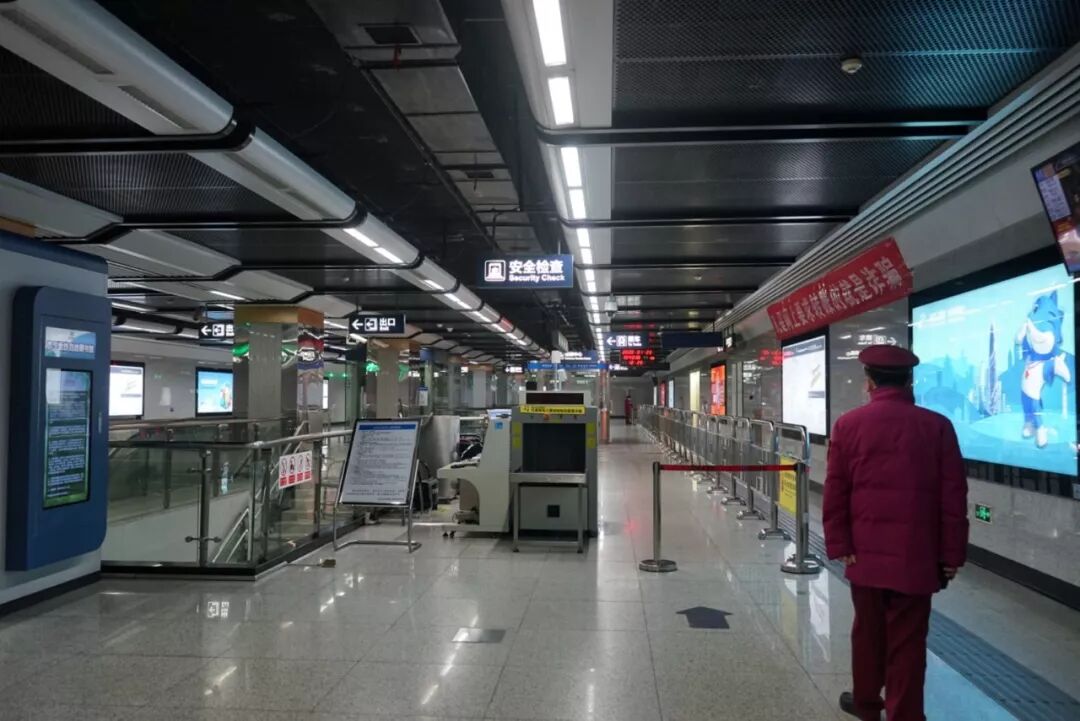 1月23日上午十点,武汉市地铁三号线工作人员正在为地铁停运做最后准备。