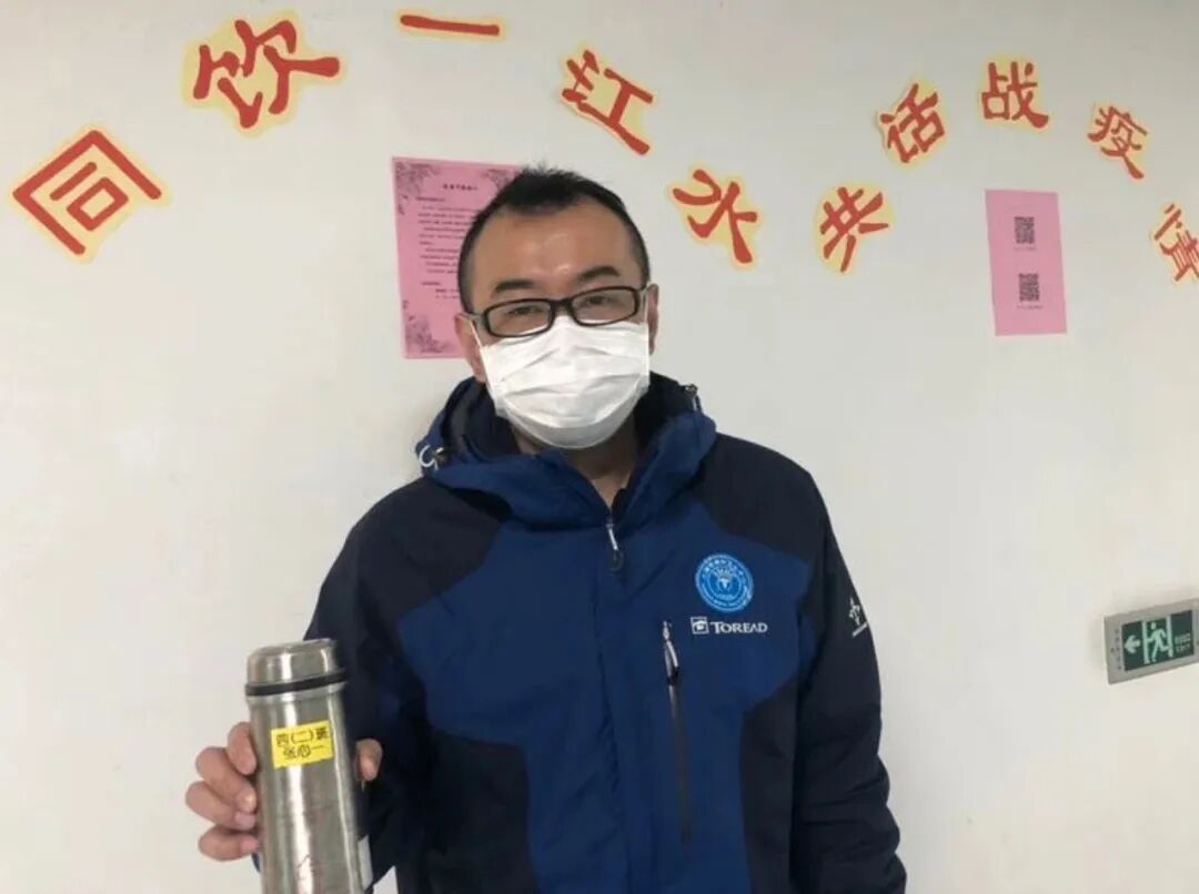 张晨随身带着儿子水杯,寄托思念之情。受访者供图