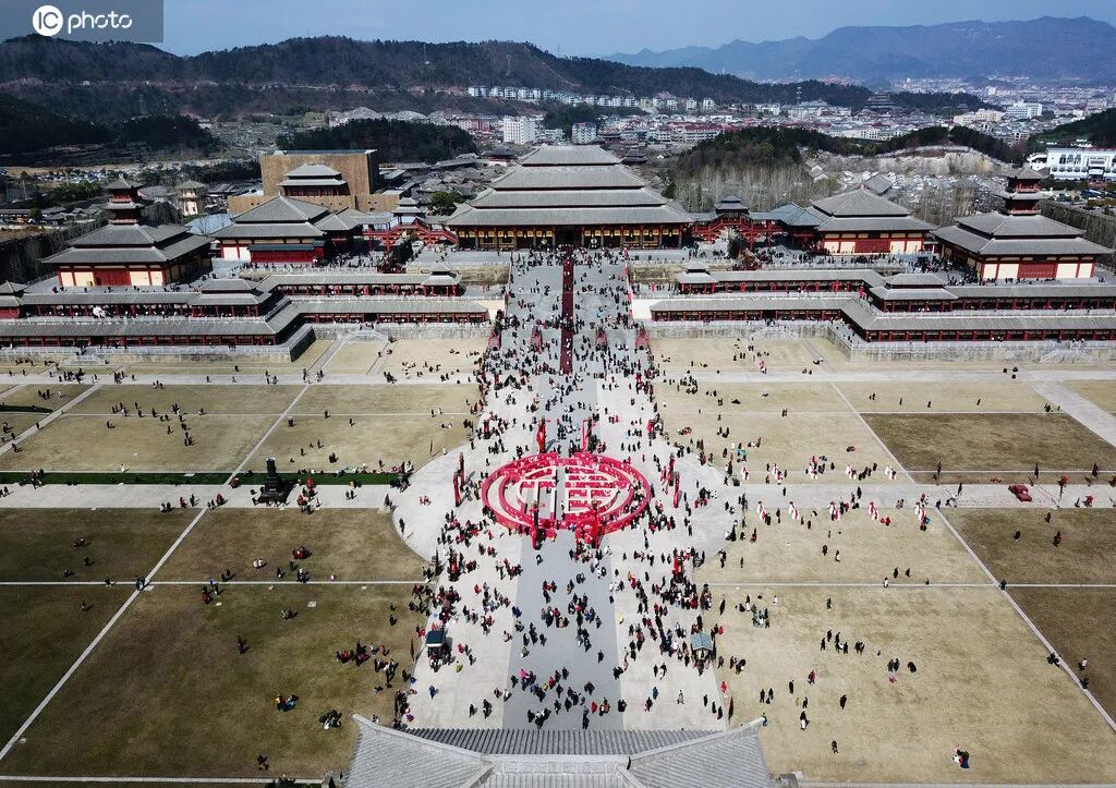 2018年大年初二,横店影视城秦王宫景区游人如织。图源自东方IC