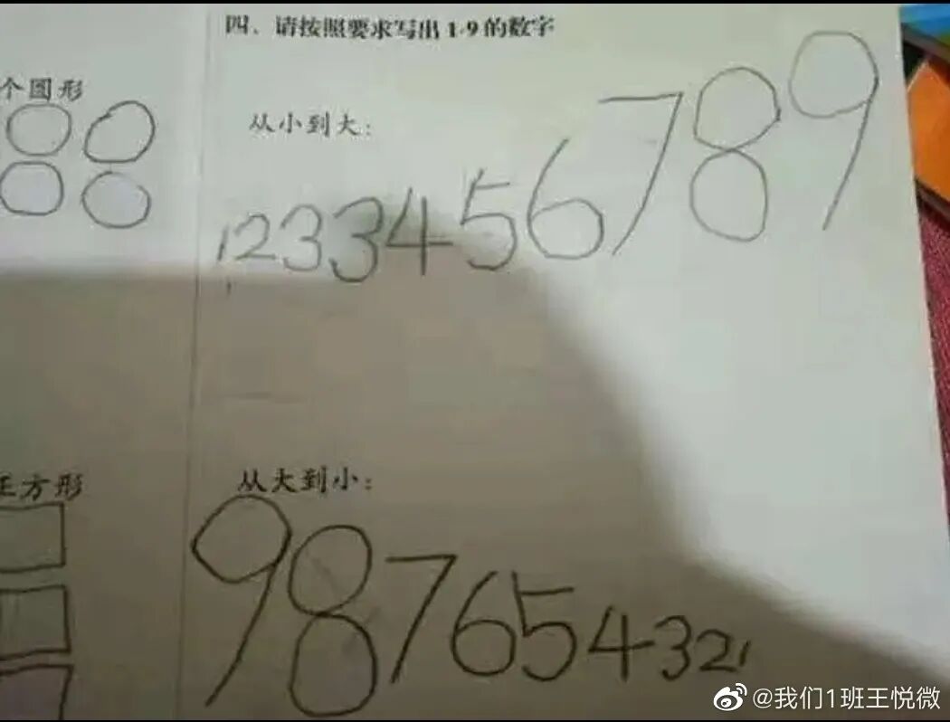 网红班主任王悦微晒出的小学生作业。图源自她的微博。