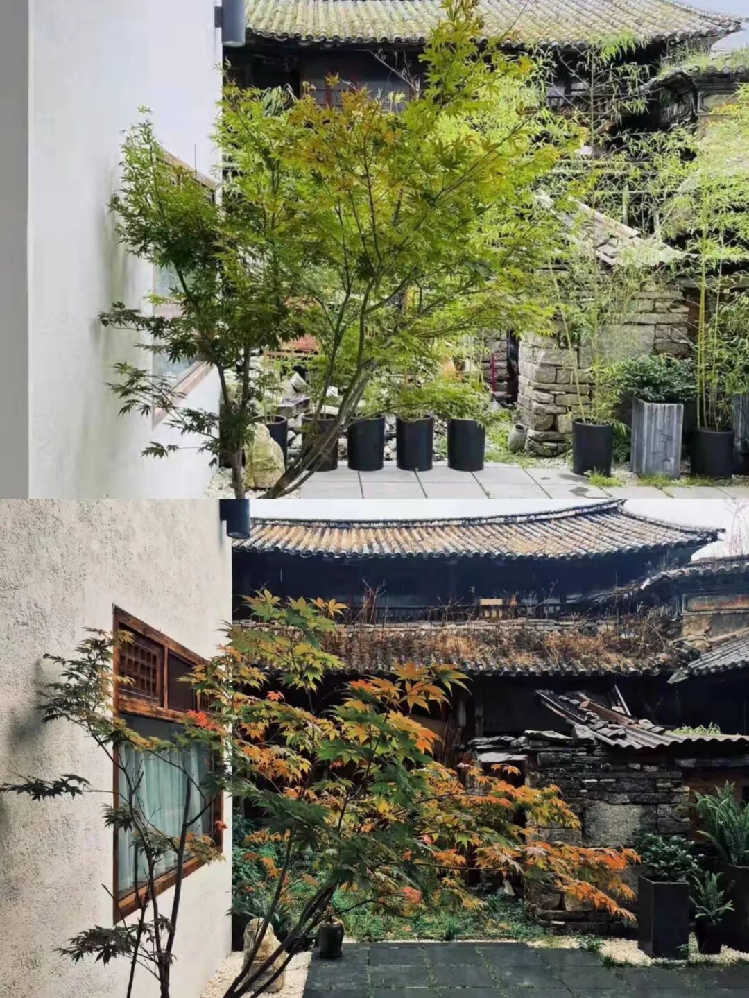●从2020年8月到2021年10月,客栈里的枫树长大了。