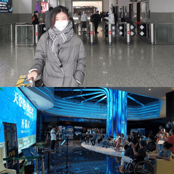 ●上图:2020年春节在天水车站。下图:2021年上海春天国际影城做活动。