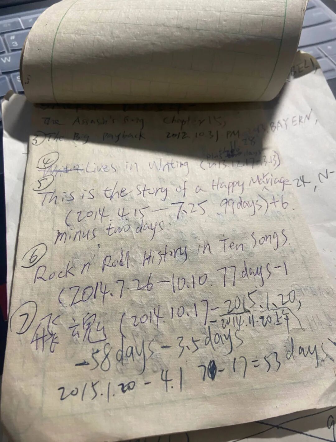 但在另一种层面,他的生命体验又极为开阔:因循要翻译的外文小说与传记书籍,他看过多部日剧,为了准确译出一些细节,他找来相扑比赛的视频。《嘻哈这门生意》书里涉及几百首嘻哈歌曲,那段时间,家里没完没了地播放音乐。塔可夫斯基的每部电影他都至少看过两遍,有些细节场景会反复观看。由他翻译的书籍被邮寄到各路读者的书桌前,触动着遥远的心灵。