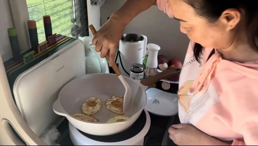 和之前的Polo车顶帐篷相比,这辆市场价近40万的房车看起来更像一个流动的家。苏敏不必再担心雨夜的被褥会受潮,车里有内置的中央空调。也不用跑很远的距离提水、烧水,支淋浴帐篷了,房车里有功能齐全的卫生间,可以随时洗漱。