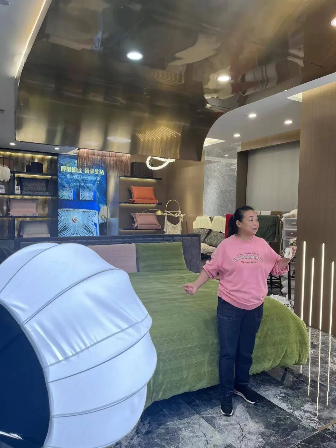今年以来,她计划继续拓展商务可能性,参与最火热的直播带货。11月底,我跟随苏敏到了浙江杭州一家家纺品牌的直播基地。在杭州,这个行业已经足够细分,作为带货主播,只需要做好自己的出镜工作,从选品到场地、场控,甚至介绍产品的副播,所有的流程都十分完善。