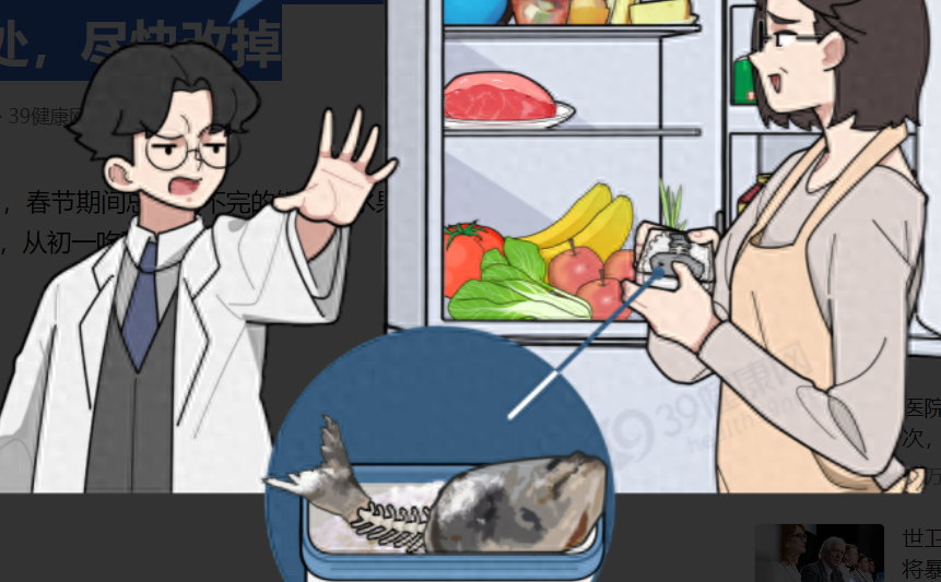 有时候食物放久了会长霉点,李阿姨总是把霉点去掉继续吃。但医生说了,这样做很危险!因为霉菌可能已经侵入了食物内部,产生了毒素。所以,一旦食物发霉变质,一定要果断扔掉!