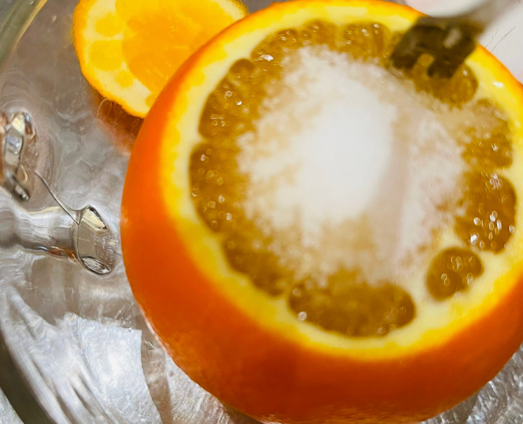 首先,取一个新鲜的橙子,用清水冲洗干净,然后撒上一些食用盐,轻轻搓洗其表面。这不仅可以清除橙子表面的杂质,还能使橙子的味道更加鲜美。接着,将橙子的顶部切开一小部分,作为“小帽子”,并在橙子的另一头切平,以便稳放在盘中。在橙子内部撒上半茶勺的盐,用小叉子轻轻戳几个孔,注意不要戳破底部。