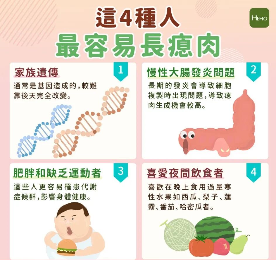 从中医的角度来看,息肉的生成通常源于情绪压力,影响肝脾功能,导致体內湿热邪毒和痰湿内生,饮食方面:偏食、饮食口味偏重且油腻以及嗜酒等,皆是导致肠道瘜肉內生的主要原因。
