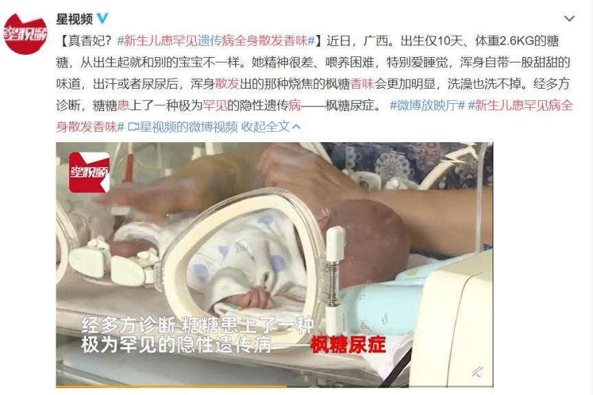 2021年,有一则现实版“香妃”宝宝的新闻就引起了很多人关注。广西一位出生仅10天、体重2.6千克的糖糖(化名),从出生起浑身就自带一股甜甜的味道。