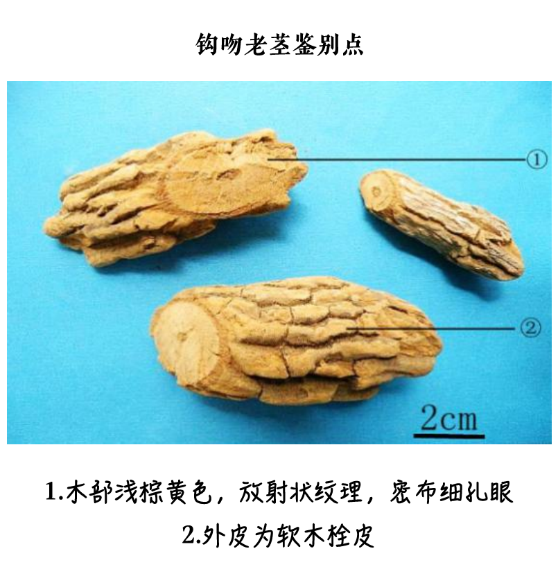 幼年钩吻的茎表面比较光滑,老茎外层是海绵一样的软木栓皮。