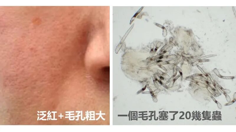 当我们脸上蠕形螨虫超标时,不只容易导致皮肤发炎,也可能会让血管增生。临床经验最多抓到